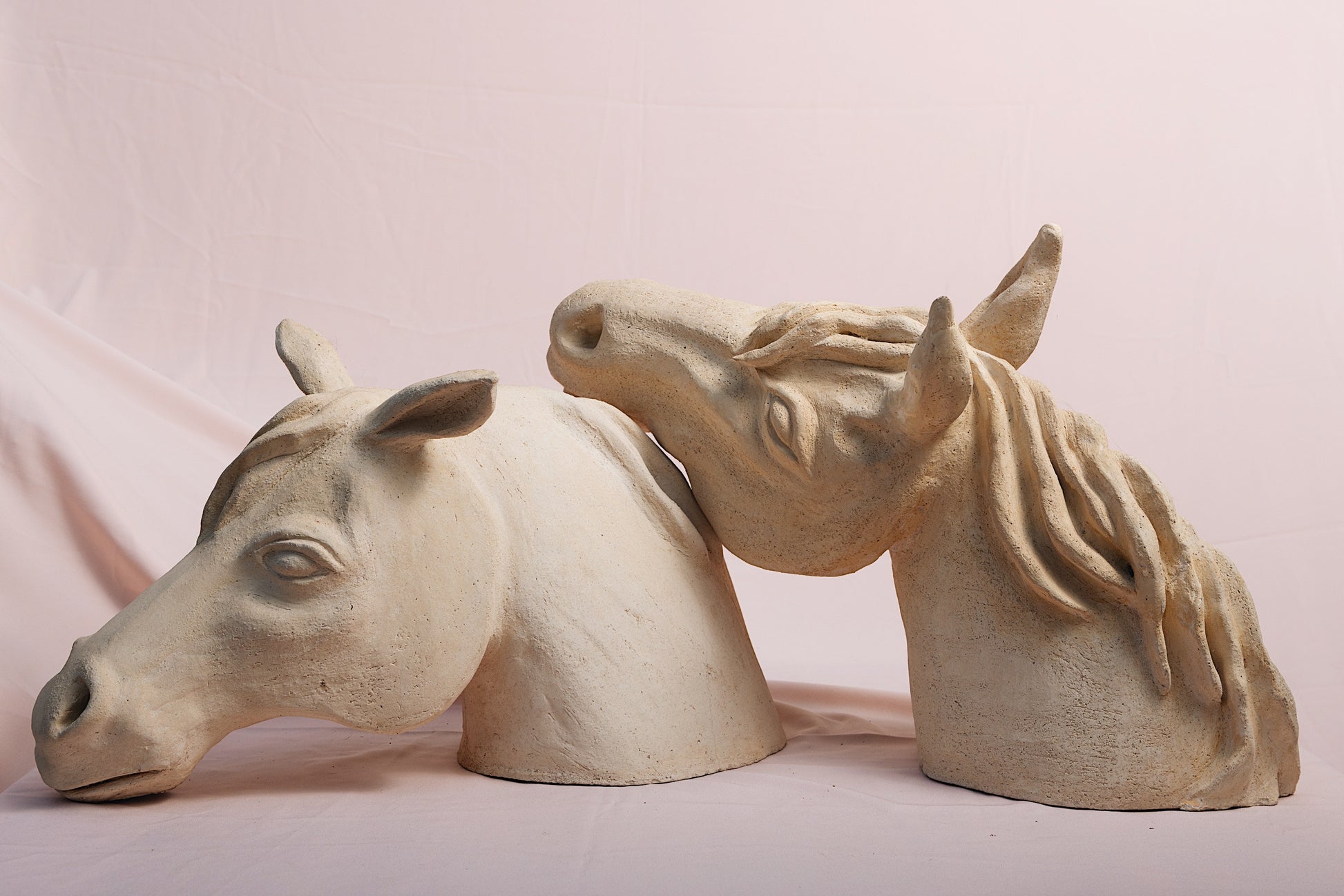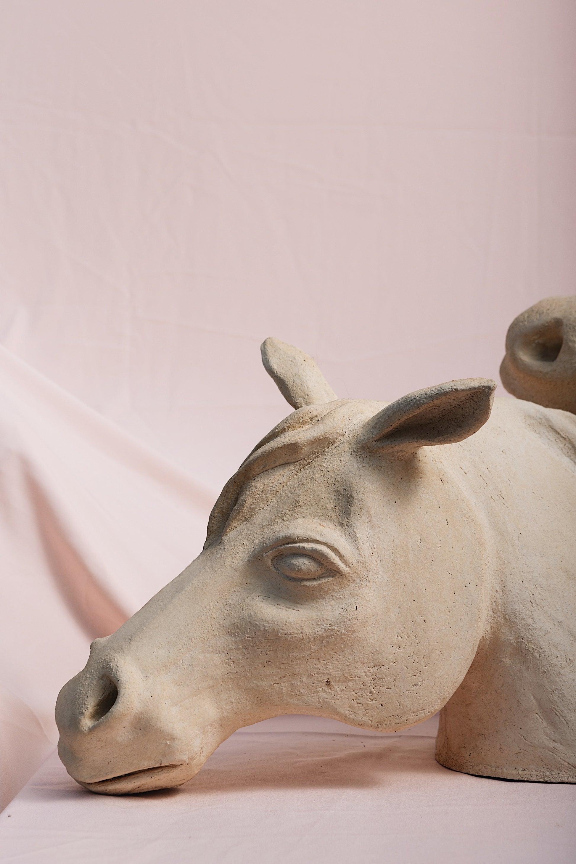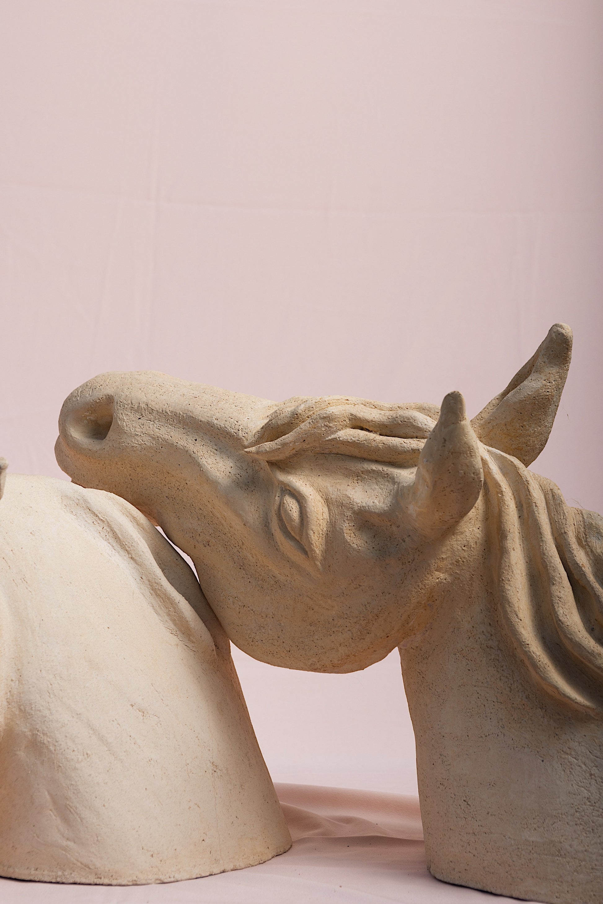 The unglazed surface reveals the raw honesty of the clay, echoing the purity of the bond between horse and horsewoman. It is a sculpture about affection, memory, and the quiet communication that transcends words.
