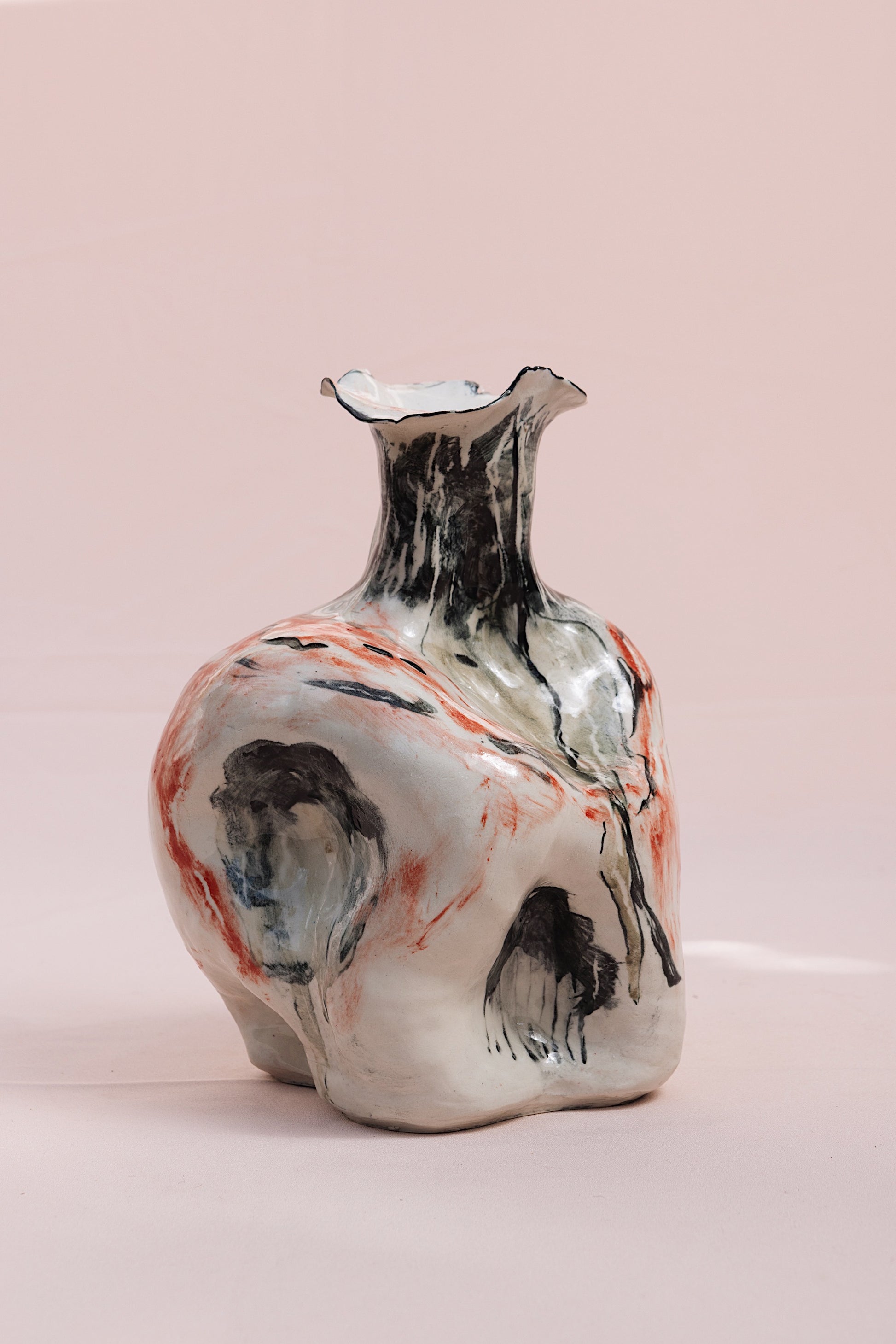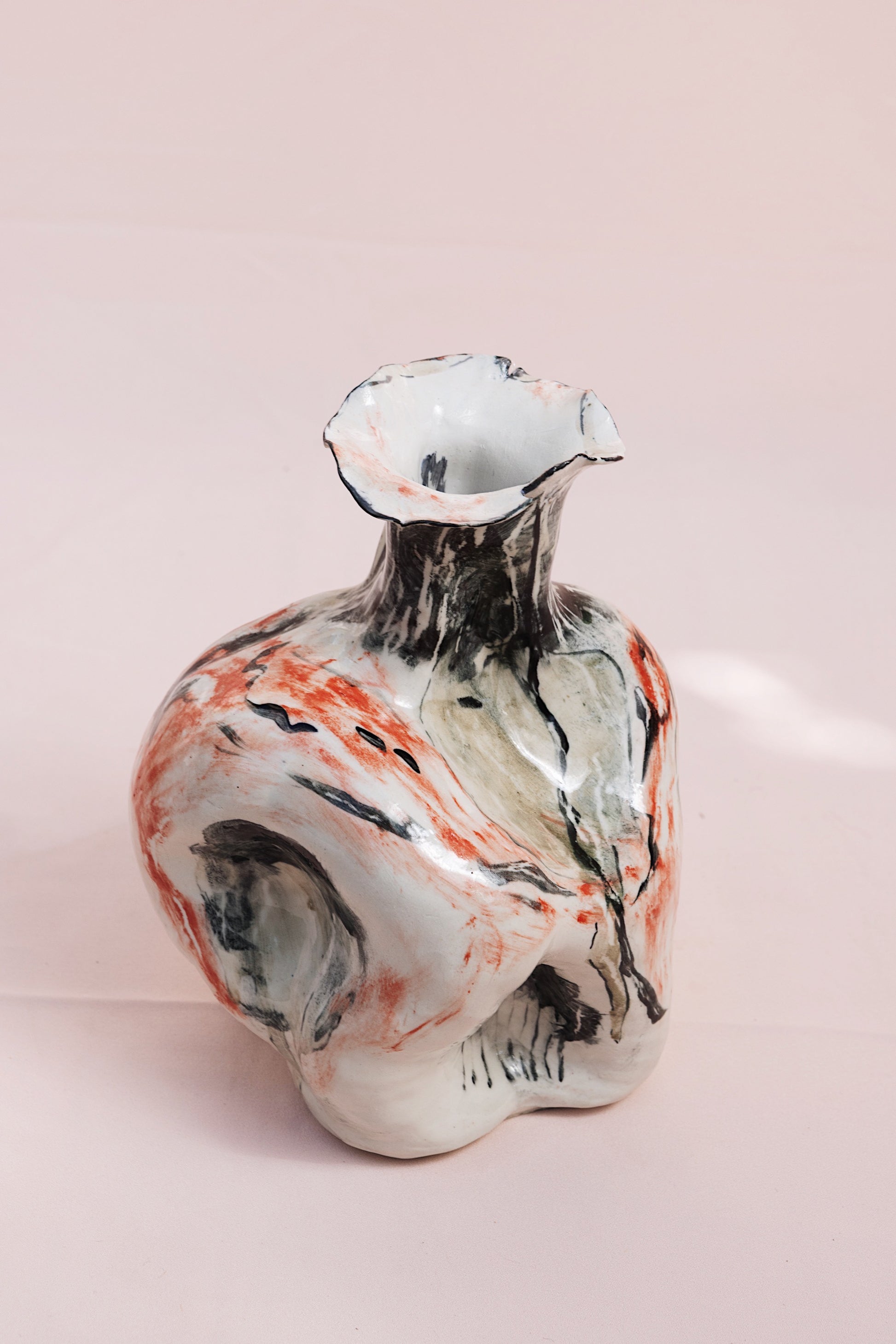 Melted embodies the quiet transformation that occurs when material and emotion merge. Built by hand from stoneware, this vessel seems to soften and flow, as if clay were caught mid-movement — half solid, half liquid. Its form resists perfection, instead celebrating the traces of touch and spontaneity.