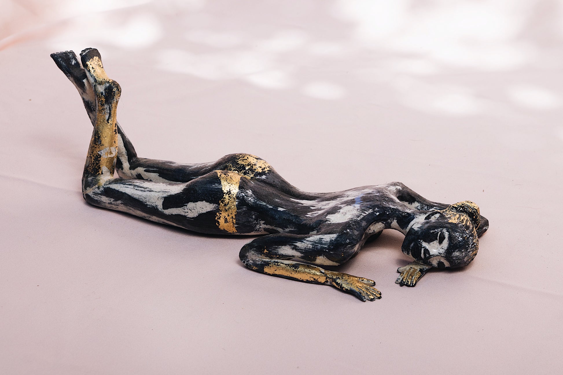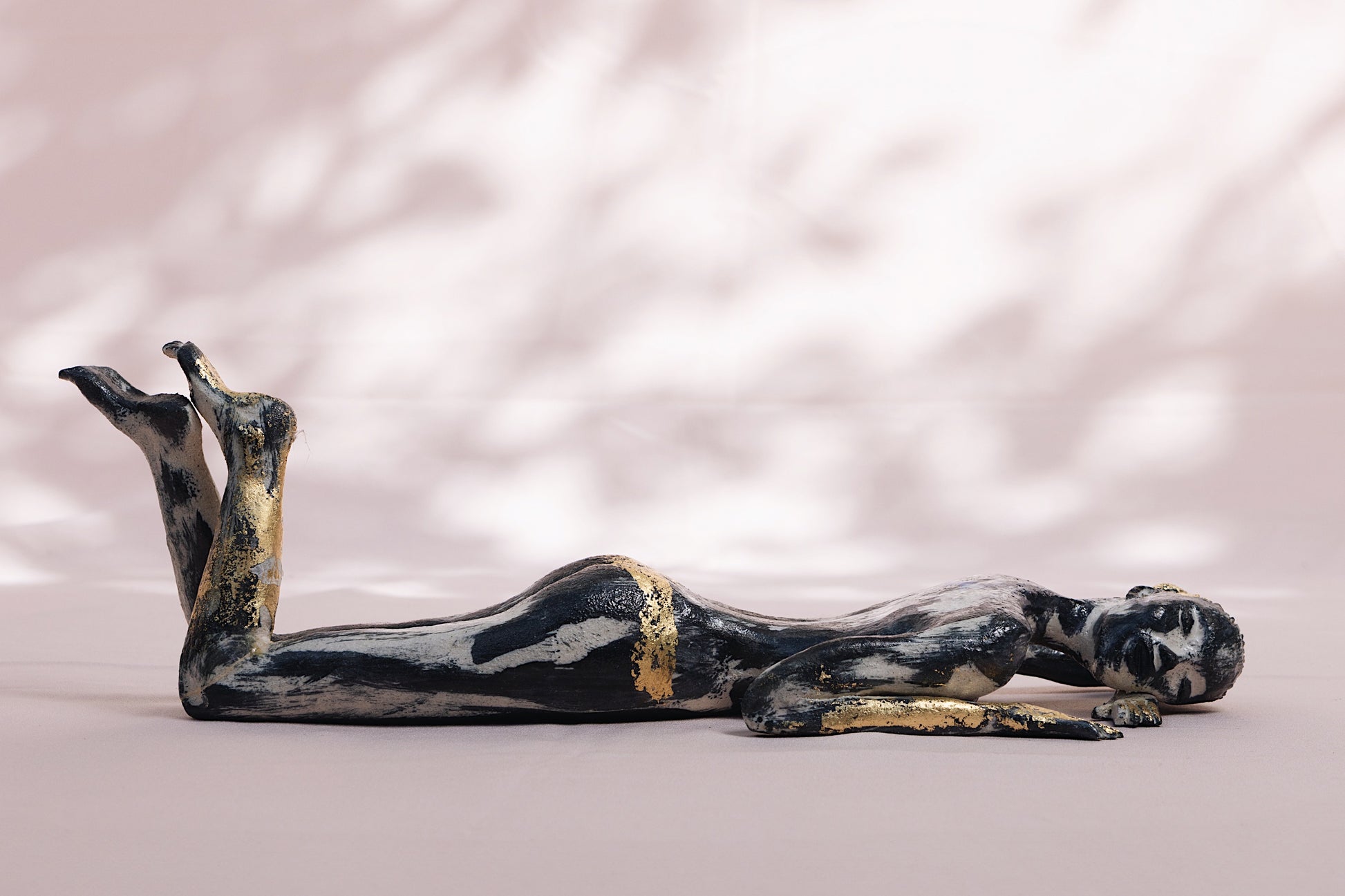 Her skin bears traces of alchemy, gold marking the passage from what was broken into what is beautifully whole.
