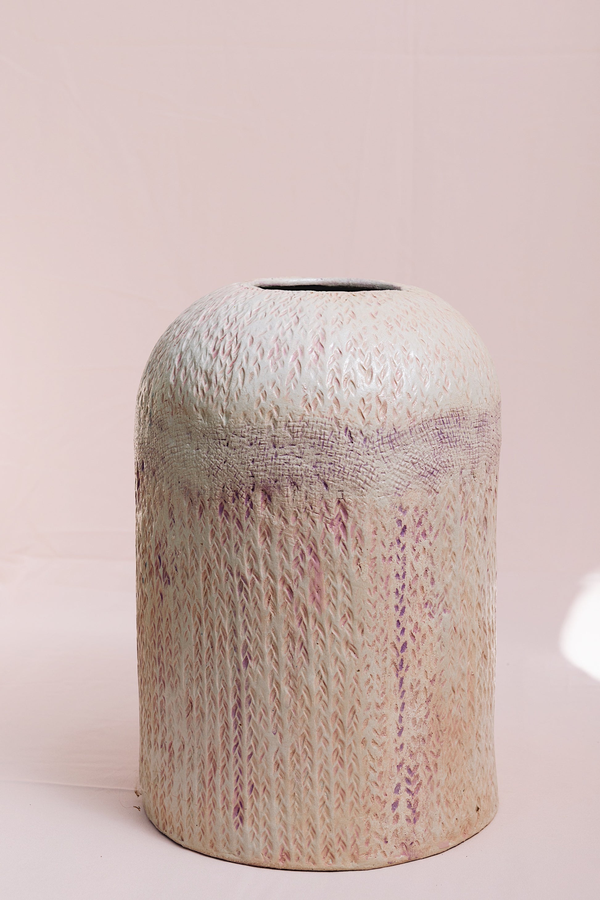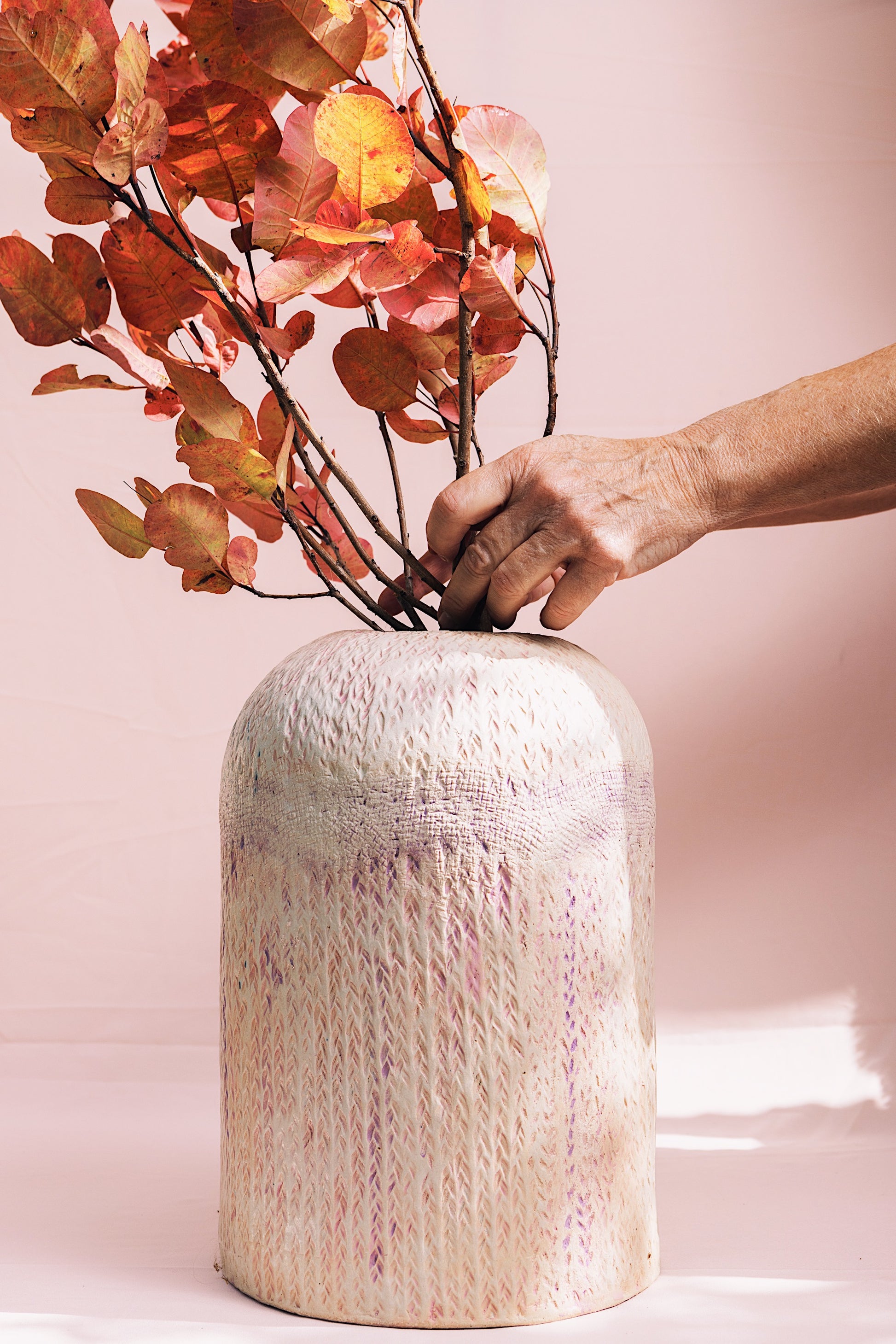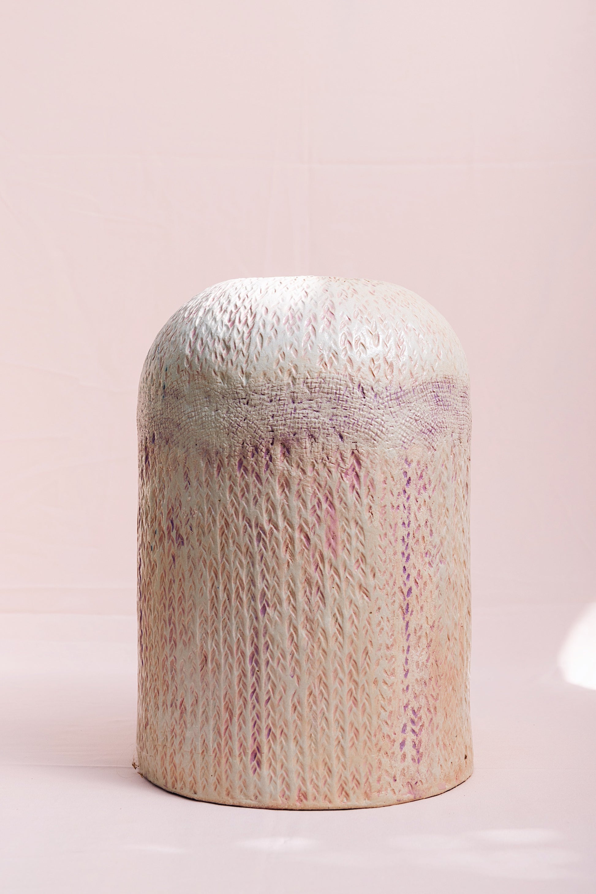 Story: The Loom carries the softness of woven fabric turned to clay. Its pale surface holds quiet traces of threads and touch, like cloth transformed by fire.
